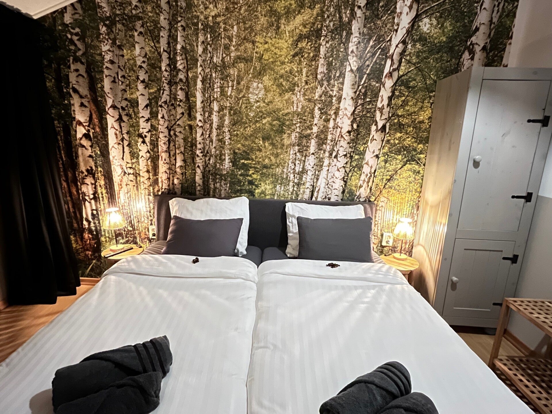 Met trots presenteren wij u kamer Bloezem. Vanaf volgende week te boeken. Deze kamer is voorzien van sprekend fotobehang, net als kamer Berk voorzien van een geheel nieuwe moderne badkamer.